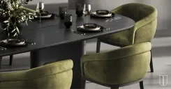 Стол Shamrock с гладкой, темной столешницей в паре с мягкими, обволакивающими стульями Alveus станет гармоничным тандемом. Холодная строгость стола будет эффектно контрастировать с уютными, воздушными стульями.