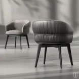 В пару к нему — стулья Fiore Rotate c опорами из массива ясеня, которые обеспечивают крепкую опору. Снаружи спинка и горизонтальная складка выполнена из натуральной кожи, а внутренняя часть, обитая премиальными материалами (букле, велюром или шениллом), создает уютное и комфортное пространство.