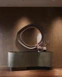 Зеркало Lumen Glow создаёт ту самую точку притяжения в интерьере. Его асимметричная форма, отделка из премиальной кожи и изысканная встроенная подсветка подчеркивают архитектуру пространства, добавляют глубины и лёгкости.