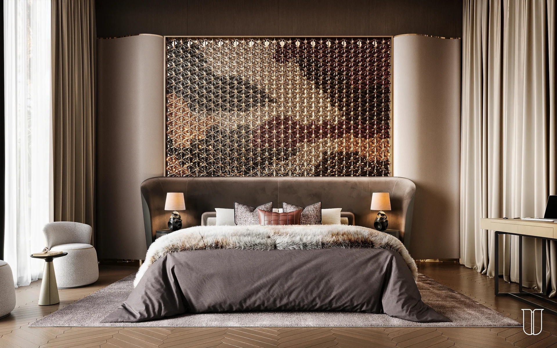 В спальне зонирование должно быть максимально деликатным, не нарушающим ощущение уюта и приватности. Для этой задачи FiftyFourms разработал кровати с округлыми, обтекаемыми изголовьями. Боковые части моделей Asteria и Vida Deluxe выступают вперёд, формируя визуально обособленную зону сна. В изголовье интегрированы розетки, а прикроватные тумбы размещаются в одной плоскости с кроватью, что делает композицию цельной и функциональной.