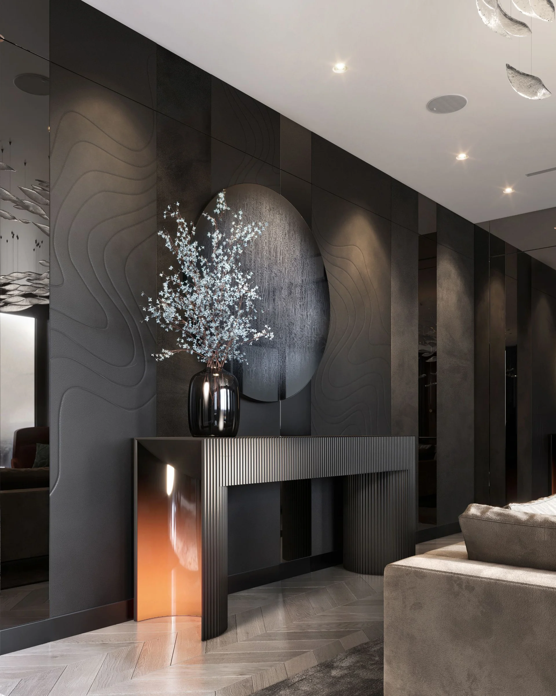 - Self-care Zone: Consider sleek dressing tables with built-in mirrors – they will add a special atmosphere to beauty rituals and self-care.
