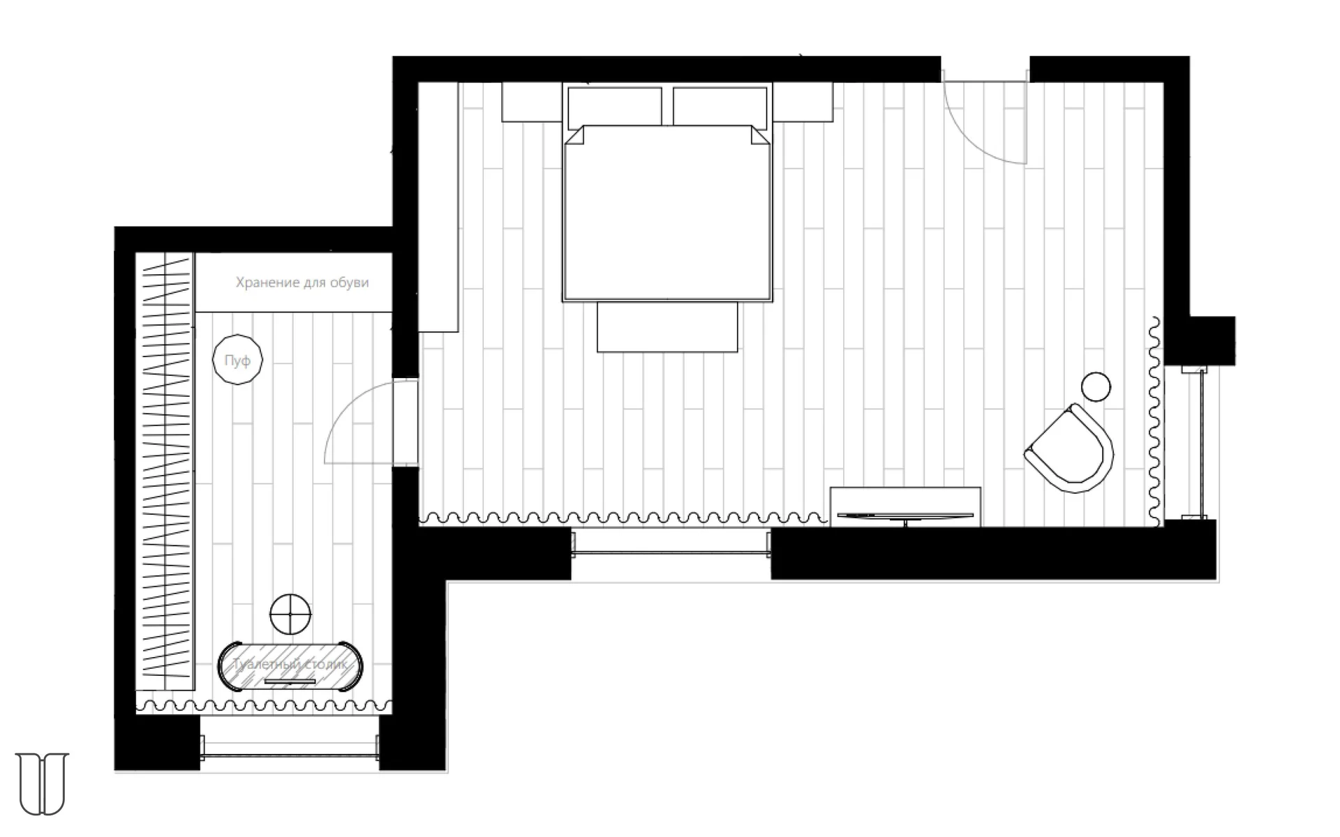 In modern interiors, it is very necessary to consider the space for each member of the family. For a man it can be a working office, and for a woman — an area with a dressing table. It can be a dressing room, part of a bedroom or her private room.