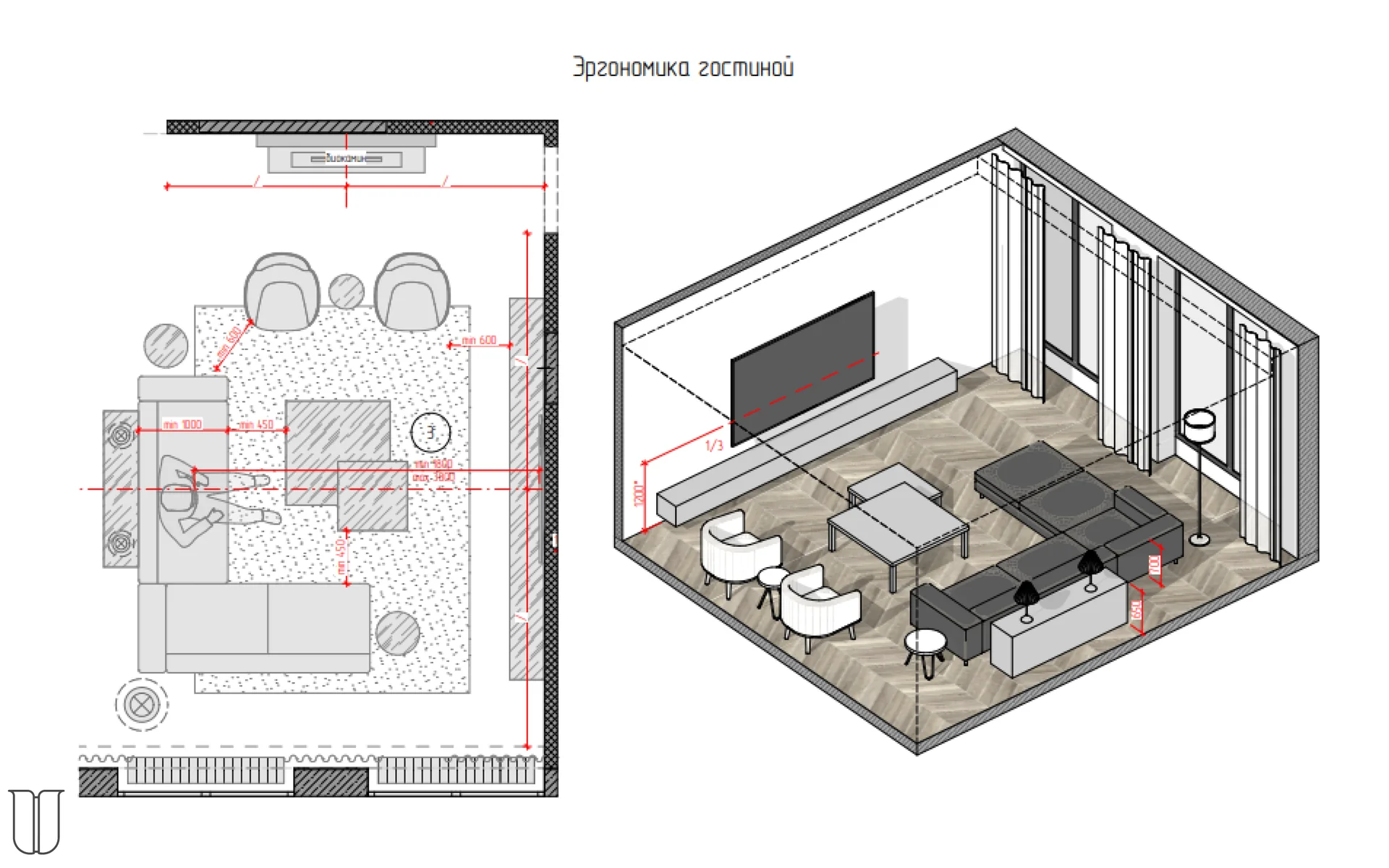 Эргономика предполагает рациональное использование пространства с учетом потребностей человека.