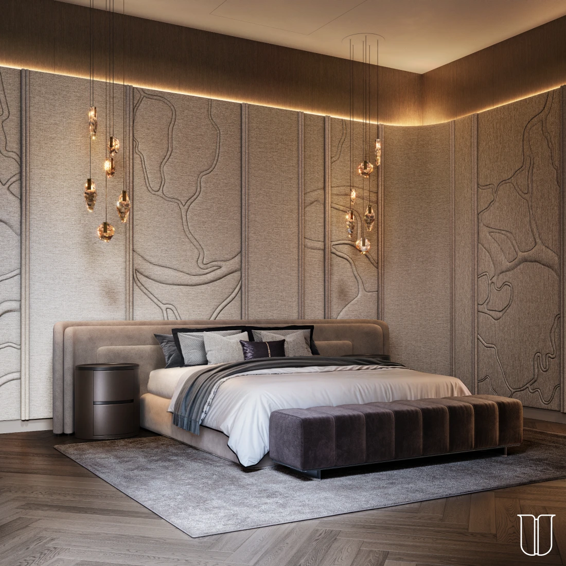 В итальянском дизайне спальни ключевую роль играет изголовье — выразительное, архитектурно выверенное, задающее композицию всей комнате.