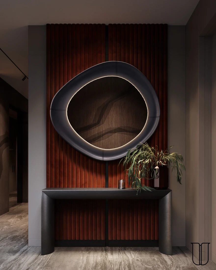 When choosing furniture for the entrance, the key principle is balance among several elements. It’s important not to overcrowd the space while still making it engaging and expressive.