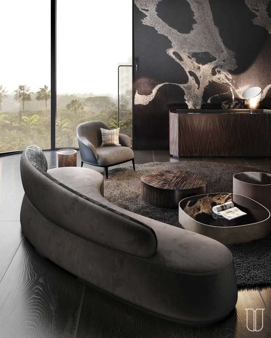 An ideal lounge area is a space where every element serves a purpose and integrates naturally with the rest. Sofas, accent chairs, tables, consoles, and chaises together form a cohesive environment — comfortable for guests, organized for hosting, and flexible for different formats of celebration.