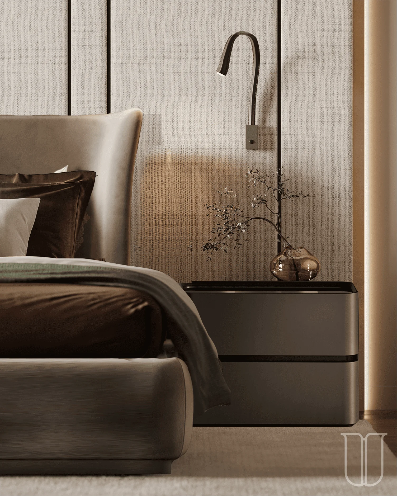 There are no accidental surfaces: the texture of rare veneers feels deeper, more alive; matte finishes diffuse light softly, without glare; fabrics drape naturally beneath the hand, as if they remember the gesture.