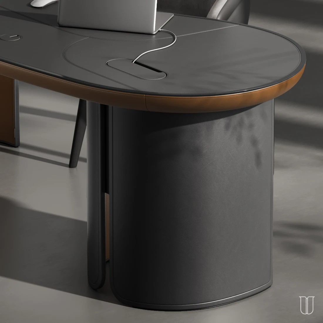 Beyond functionality, we consider how furniture feels in use. The surface of each desk is finished with perfectly polished natural veneer — smooth, warm, and inviting to the touch. Inside the drawers, soft leather mats and silent closing systems absorb sound and create a sense of calm. These details define a culture of touch — a quiet language of luxury that makes you feel as if you’re in your own private executive office.